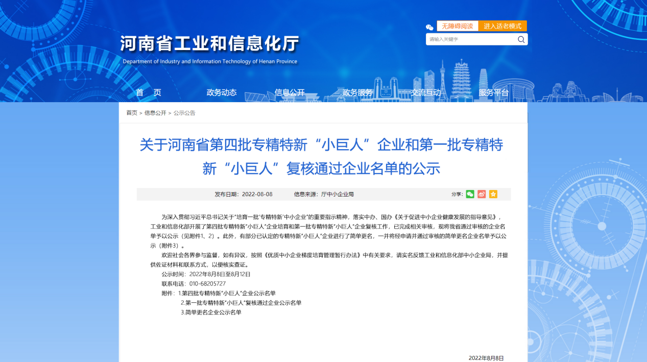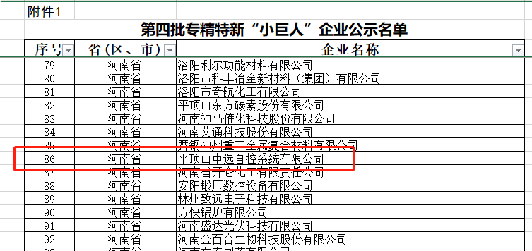 喜報(bào)!平頂山中選自控系統(tǒng)有限公司入選國(guó)家級(jí)專精特新“小巨人”企業(yè)名單